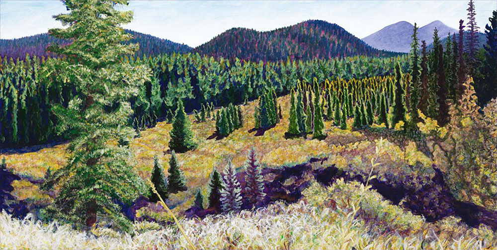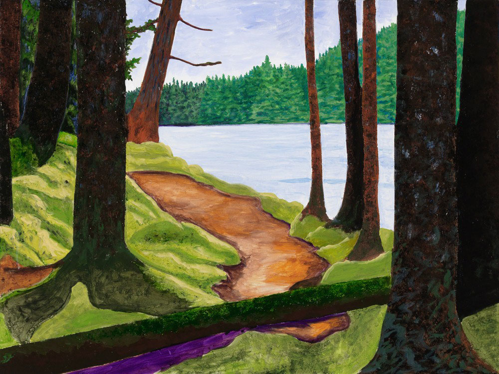 "Haida Gwaii, off the west coast of Canada, is a magical place and a unique ecosystem. The salmon-laidened Tlell River glitters through the dark, moss-covered ground and trees. Thanks so much to Doug and Penny Richardson, the latter also an artist, who shared her wonderful studio and home with me, and to Gladys Stephenson, Penny’s sister, another environmental scientist and fellow ecosystem appreciator, who made it possible. The generosity of artists to each other is a great inspiration to me."